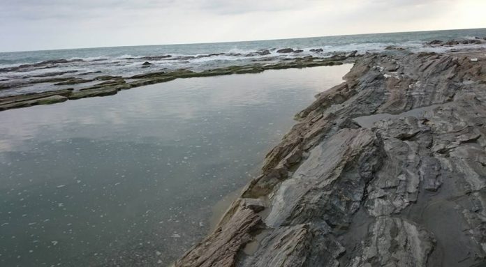 L’ultimo quadrato davanti alla spiaggia delle tartarughe è di acqua blu cobalto, che ti arriva al mento al secondo passo, ma va a sbattere dopo un breve tratto contro un’altra pedana di roccia. Per avere mare libero bisogna seguire la corrente di una specie di fiume che scorre diagonale, fra gli spigoli dei quadrati gialli e di quelli blu.