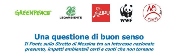 Le Associazioni Greenpeace, Legambiente, Lipu e WWF Italia, insieme al Movimento No Ponte Calabria, oggi venerdì 2 maggio dalle ore 17 organizzano a Villa San Giovanni nell’Auditorium Istituto Giovanni Trecroci in via Alcide De Gasperi, il convegno “Una questione di buon senso. Il Ponte sullo Stretto di Messina tra un interesse nazionale presunto, impatti ambientali certi e conti che non tornano”.