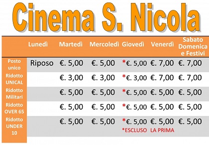 Orari Spett.: 16,30 – 18,30 – 20,30 – 22,30