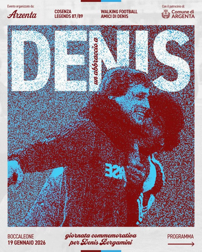 Oggi lunedì 19 gennaio dalle ore 12 nel campo sportivo di Boccaleone di Argenta (Ferrara) “Un abbraccio a Denis”, iniziativa organizzata dagli amici di Denis Bergamini con il patrocinio del comune di Argenta. Arriveranno a Boccaleone compagni di squadra di Denis e dirigenti che hanno diviso con lui lo spogliatoio nel suo percorso calcistico fin da quando era ragazzino sul campo di Boccaleone fino alla serie B col Cosenza Calcio.